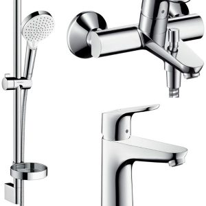 Paket miješalica Hansgrohe Focus, (miješalica za umivaonik+miješalica za kadu+tuš set)